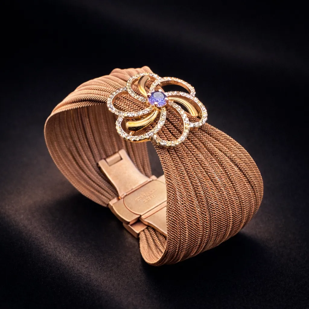 Designer Floral Crystal Cuff Bracelet | 50 Mm | 925 Sterling Silver