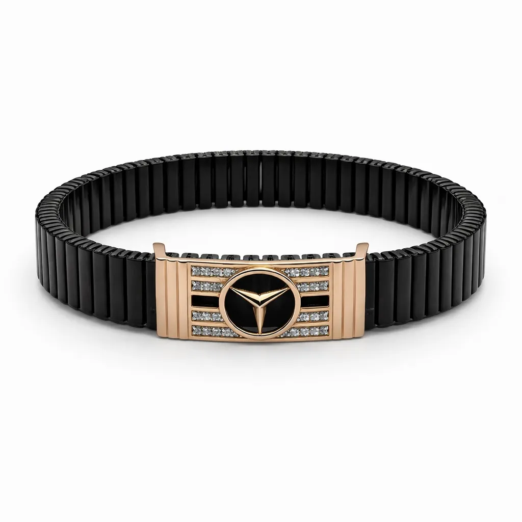 A stylish men’s bracelet that combines a sleek band with a rose gold 925 silver centerpiece, perfect for everyday wear. The durable black band offers flexibility and all-day comfort, making it perfect for both casual and elevated looks. Strong and lightweight ...